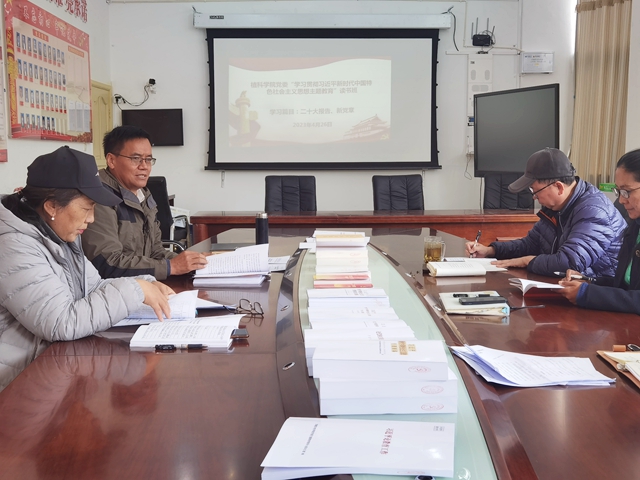 开班式上,植科学院党委书记达瓦传达学习了《西藏农牧学院学习贯彻习近平新时代中国特色社会主义思想主题教育实施方案》精神内容,安排部署了读书班学习计划、时间安排、学习内容、研读要求和有关事项,统一了思想行动,提出了工作要求;学院副书记旺姆作了补充强调,提出了以主题教育推动更名申博等重点工作的希望要求;在研讨环节大家谈了参加学校读书班的体会与收获,分享了学习方式方法,大家决心通过主题教育以新时代党的创新理论夯实立德树人根本任务,以牢牢把握“两个确立”决定性意义为党育人、为国育才,以构建“三全育人”和大思政育人格局培育“请党放心,强国有我”的建设者和接班人;接着,大家重点围绕当日学习篇目“二十大报告、新党章”展开读书自学,原原本本细读二十大报告,逐句逐条品读党章,认真记录学习笔记,率先垂范带头学习;全体无课党员也来到学习室参加读书班学习活动,加强理论学习,强化理论武装。