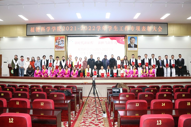 随后,党委宣传委员、副院长董爱荣教授宣读《植物科学学院关于表彰2021—2022学年学生工作专项表彰获得者的决定》,学院领导分组为获奖代表颁发了证书、敬献了哈达。