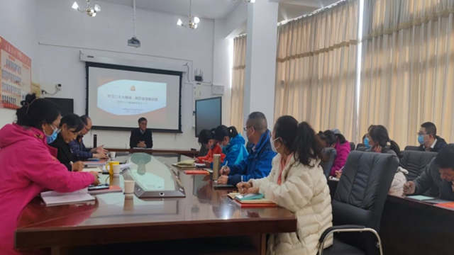 为深入学习宣传党的二十大精神,全面贯彻习近平新时代中国特色社会主义思想的学习宣传落实到实处,切实把广大师生的思想和行动统一到党的二十大精神上来,根据学校党委的安排部署和植科学院党委的学习计划,2022年11月11日,植科学院党委在第二教学楼四楼会议室组织开展了党的二十大精神宣讲辅导会,会上由党委书记达瓦以“学习二十大精神 踔厉奋进新征程”为标题作了党的二十大精神宣讲辅导,植科学院教职工党员、干部职工参加。