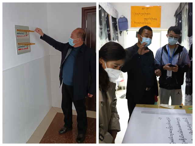 在学生宿舍,食品学院党委副书记索朗才旺与辅导员次仁措老师认真检查宿舍用电、寝室书画内容、食品保质期、卫生打扫、环境消杀、消防器材、消防通道;查看学生床铺质量,线上学习情况,与学生贴心交流,了解学生困难并积极联系学校相关职能部门进行解决;没收违禁物品,教育引导学生重视安全问题,绷紧安全防线。