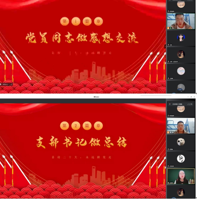 会议伊始,在会党员依次向大家分享自己学习党的二十大给自身带来的感想及自己的心得。他们提到,新时代赋予我们大学生党员的责任无比重大,使命无上光荣;应不忘初心,恪守使命。践踏实地,不断学习,积极进取;坚定跟党走的决心,牢记中国青年的责任,力求在新时代的舞台上建功立业。