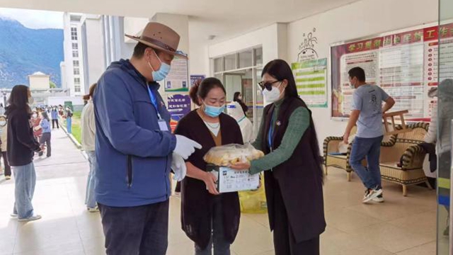 9月2日,学校工会副主席贾海娥带队慰问学生宿舍区全体值班人员,为宿舍区全体值班人员送去牛奶、鸡蛋等慰问品,表达对他们的敬意和感谢。在慰问过程中,贾海娥副主席就宿舍区日常防疫工作与学生工作处副处长洛桑云旦及宿舍区全体值班人员进行了交流,详细了解值班员防护措施落实、值班值守等工作情况,并对他们模范履职、尽职尽责表示诚挚的感谢。洛桑云旦表示全体值班人员在学校全力抗疫期间克服困难、默默付出,真正做到了立足本职、履职尽责。