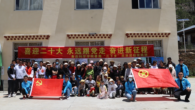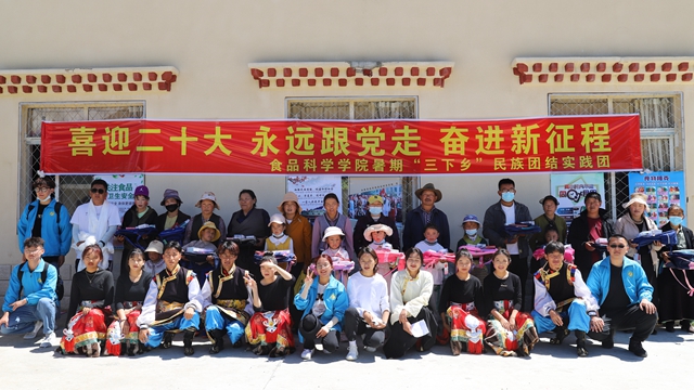 2022年暑期,食品科学学院围绕“喜迎二十大、永远跟党走、奋进新征程”主题,以民族团结、助力乡村振兴、科技助农、关爱留守儿童困境家庭、扶贫济困等为重点,赴林芝江达镇嘎旦村开展暑期文化科技卫生“三下乡”社会实践活动。
