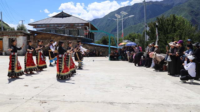 随后,实践团成员为村民奉上了精心准备的歌舞表演,村民们笑逐言开,小朋友们积极互动,一片其乐融融。演出间隙,旦巴副院长慰问了困难村民,为3户“建档立卡”家庭送去了大米、食用油、砖茶等生活用品;为27名中小学生送去了书包、铅笔、文具盒等学习用品。