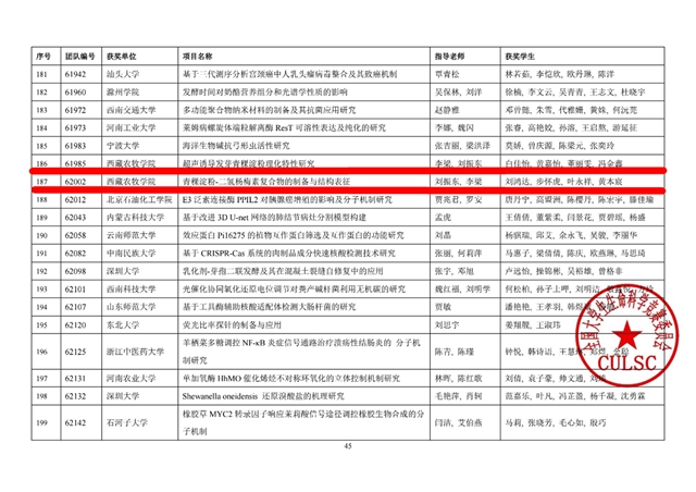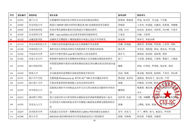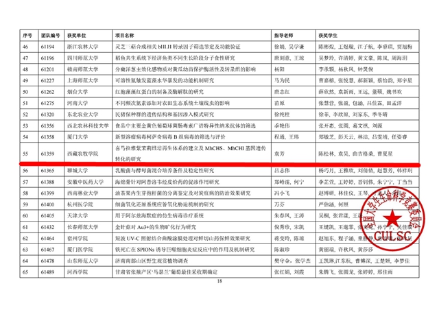 近日,由全国大学生生命科学竞赛委员会主办的全国大学生生命科学竞赛(2022,科学探究类)结果揭晓。本届赛事自2021年7月网络报名至2022年8月全国决赛,历时一年之久,经过竞赛委员会组织的资格审查、网络评选、终审答辩等多个环节,西藏农牧学院食品科学学院申报的参赛作品在8614件参赛作品中脱颖而出,荣获国家二等奖1项、三等奖3项,获奖数量、质量均创历史新高。