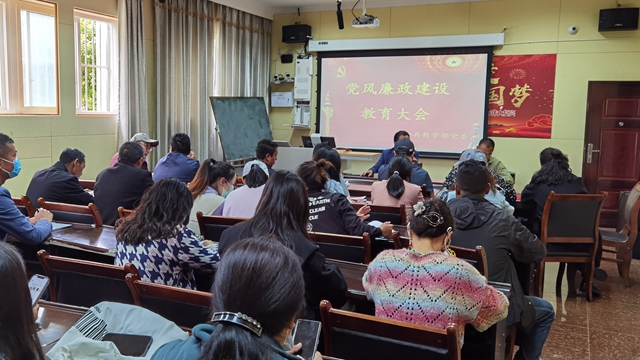 会议还组织全体教师观看了廉政教育警示片《零容忍第一集、不负十四亿》,通过观看廉政教育警示片,将案例分析转化为教育资源,对全体教师起到了很好的警示教育作用,老师们纷纷表示一定要严明政治纪律和政治规矩,筑牢拒腐防变思想防线,严格执行中央八项规定,认真学习“约法十章”、“九项要求”和 “十个严禁”, 坚持以身作则,不断营造崇廉尚洁氛围,扎实推进党风廉政建设和反腐败斗争,为培养德智体美全面发展的中国特色社会主义建设者和接班人提供有力的政治保证。