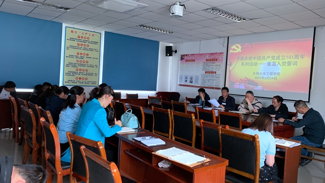 为庆祝中国共产党成立 101 周年,大力宣传党的光辉历程和丰功伟绩,扎实推进进一步改进作风狠抓落实工作,激励各党支部和广大党员干部切实转变作风,积极投身学校高质量发展。2022年6月24日下午,水利土木工程学院组织召开“学习老西藏精神,重温入党誓词”主题党日活动,学院党委书记达娃主讲,全院无课教职工参会。