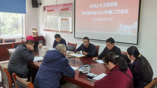 为深入推进学院改进作风狠抓落实工作。2022年4月22日下午15:30,在水土学院会议室召开了2022年度水土学院学术委员会第二次会议。根据第一次学术委员会到会成员达成共识的基础上,召开本次会议主要是“定学科、定方向、建团队”。学术委员会主任委员王培清,学院副院长孙海波,以及学术委员会委员张文贤教授、宗永臣教授、李玉庆教授、张玉云副教授、肖玉红副教授及学术委员会秘书白庆芹老师出席本次会议。