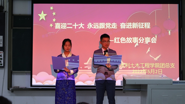 为更好团结引领广大青年坚定跟党走,建功新时代,营造昂扬向上、团结奋进的浓厚氛围,纪念中国共青团成立100周年,引导广大青年大力弘扬“五四”精神,继承优良的爱国主义传统,展现新时代青年风采。把改进作风狠抓落实工作与做好具体工作紧密结合起来,推动学院党风、作风和学风展现新气象、再上新台阶。水利土木工程学院于2022年5月2日19:30在4108教室开展纪念建团百年红色故事分享会活动。出席本次活动的有水利土木工程学院党委副书记潘多,团总支书记续辉,团总支副书记周小燕、陈志瑞,学生会主席龙建刚及21级学生代表。