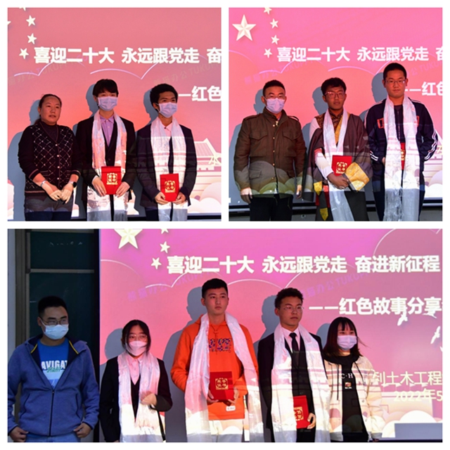 在主持人肃清会场纪律后,活动正式开始。此次活动由九名参赛者围绕“展现团的风雨历程,歌颂党的丰功伟绩”进行红色故事分享,他们把中国共青团的百年奋斗征程中的革命历史、人物故事、红色事迹传递给在场的每一个人,通过生动的讲述,让同学们了解到今天的幸福生活来之不易,也让他们在回忆和感动中充满对革命先驱的崇高敬意,进一步坚定了为实现中华民族伟大复兴的中国梦而努力学习的信念。在比赛过程中选手们精神饱满,举止大方,展现出了我院青年学子朝气蓬勃的精神风貌。晚会接近尾声之际,潘多书记对此次分享会进行总结并致以同学们殷切希望。她希望同学们能深刻领会习近平总书记对大学生朋友们的殷切期盼,勇挑重担,积极向上,勇做新时代征程中的奔跑者、奋进者。最后同学们再次以热烈的掌声对获奖选手表示祝福。