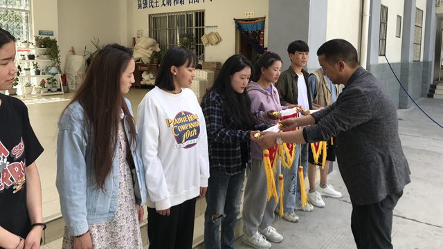 颁奖仪式上索朗才旺对获奖宿舍及教室表达了祝贺和期盼,对同学们的努力表示了肯定,祝贺同学们通过自己的努力获得了优秀教室和文明宿舍的荣誉,同时也期盼同学们注重宿舍和教室卫生的同时,也要加强各民族之间团结,和睦相处,共同学习,共同进步,将宿舍和教室建设为民族团结的大家庭。巩雪梅对卫生部成员提出了两点要求:一是检查宿舍和教室卫生要对照检查标准,及时在qq群中将检查照片上传;二是疫情防控工作不松懈,要定期消毒,防范各种疾病突发。最后各位老师、获奖代表和卫生部成员合影留念。