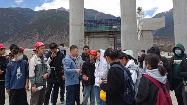 2021年4月24日,水土学院组织学生前往米林县新雅江大桥参观了预制T梁施工,项目施工技术人员和带队教师分别给同学们讲解了预制梁的制作工艺流程。一是结合现代施工技术,教育引导学生对国家重大工程科学技术成就的认同;二是从绑扎钢筋、模板安装、混泥土浇筑和养护,到后穿预应力钢筋,施加预应力的全部过程,使学生对该知识点有了直观的认识;三是深入桥墩的施工现场,使学生初步掌握桥墩从桩基,到下承台,再到上承台的施工流程,尤其学习到了用钢套筒做围堰进行基坑抽水,基坑开挖,基坑支护的现场施工,使学生们对桥墩施工工艺有了更深的理解。4月25日,组织学生深入林芝市巴宜区公共卫生临床中心(传染病医院)在建工程现场开展实习,主要对该项目的社会服务功能,在建项目地基处理、主体结构施工、污水处理场所设置等情况进行学习,增强学生对房屋建筑结构设计、施工的感性认识。
