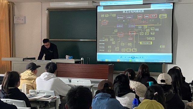 为了提高学生对电网调度工作的直观认识,电气学院邀请西藏国网林芝公司调度部门一线工作员工朱晓昊为2018级学生做报告,朱晓昊是我校电气工程学院2015级优秀毕业生,在校期间表现优秀。课堂上,朱晓昊对林芝电网概况、林芝城区主电网潮流分布以及调度工作日常的开展情况进行了详细介绍,并结合林芝电网“十四五规划”与同学们展开热烈的讨论学习。