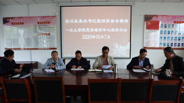 2020年9月30日下午,自治区党委书记吴英杰来到学校,宣讲中央第七次西藏工作座谈会精神,为深刻领会中央第七次西藏工作座谈会精神,认真学习、贯彻落实宣讲报告会精神,2020年10月7日上午,水土学院党委理论中心组开展专题学习会,会议由党委书记达瓦主持、主讲,全院党委全体委员参会。