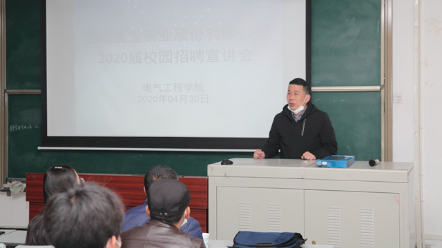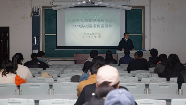 为深入落实习近平新时代和中国特色社会主义思想,值此抗击疫情决胜阶段,为实际解决电气工程学院2020届广大毕业生就业问题。2020年4月30日上午10:00,西藏玉龙铜业有限公司应邀在我院4108教室开展高校毕业生招聘会。西藏玉龙铜业有限公司纪委书记李明山、人资部赵永海主任,西部矿业人力资源部招聘室主任刘玲,学院党委书记达娃次仁,学生辅导员张晓维和我院2020届毕业生参加此次招聘会。