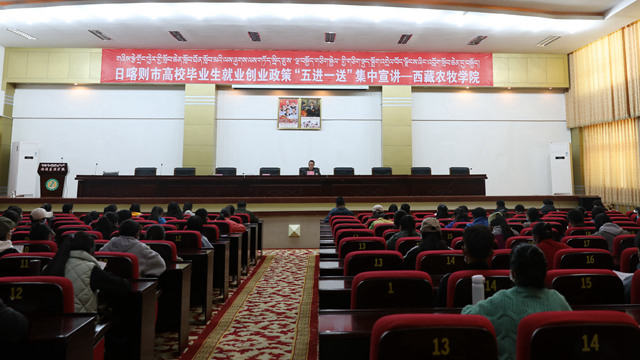 为深入贯彻落实国家和自治区促进高校毕业生就业创业的安排部署,积极开展就业创业政策宣传、形势分析、创业典型宣传和创业指导,帮助我校2020届毕业生实现充分就业,5月11日上午,“日喀则市高校毕业生就业创业政策‘五进一送’集中宣讲”在我校召开,日喀则市劳动就业局主任索旺一行为我校毕业生进行宣讲,校招生就业处副处长洛桑云旦主持宣讲会,招就处工作人员及各二级学院负责就业工作辅导员、2020届200余名日喀则籍毕业生参加了此次活动。