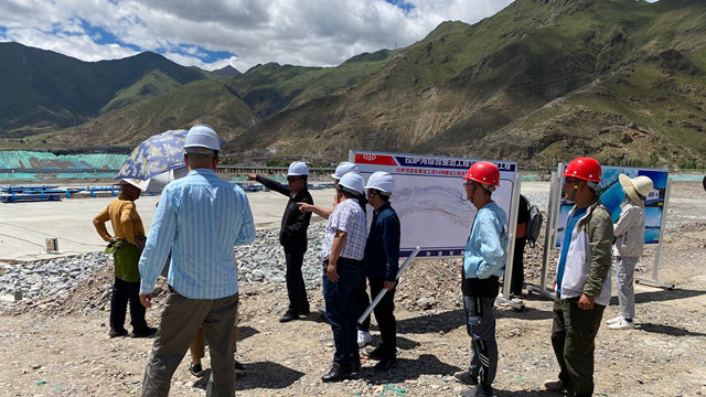 7月6日12点许,在孙美娟、刘诗剑等的陪同下调研组前往拉萨河综合治理施工现场进行了参观,对5号闸门的工程效用,闸门运行原理,闸门尺寸,排沙原理,5号闸门与上游旁多水电站、直孔水电站的统筹防洪调度做了详细的了解。