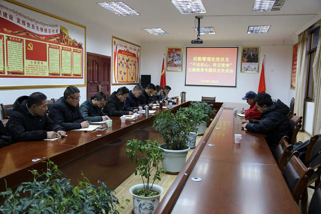 最后,布穷书记做了表态性发言并强调:后勤管理处党总支领导班子要以本次主题教育专题民主生活会为契机,解放思想,实事求是,提高政治站位,继续团结率领处党总支党员干部深入学习《习近平关于“不忘初心、牢记使命”重要论述选编》,继续深入贯彻落实党的十九届四中全会精神、习近平总书记治边稳藏重要论述和关于教育工作的重要批示批示精神、习近平总书记致西藏民族大学建校60周年的贺信和给全国涉农高校的书记校长和专家代表的贺信精神,切实通过学习教育,筑牢忠诚根基,不断巩固主题教育学习成果。要坚持抓常抓长见长效,以问题整改为落脚点,在做好问题整改“后半篇文章”上下功夫,把查摆出来的问题,明确主体责任,一项一项总结再研究,列出整改清单,一条一条制定整改措施,提出整改时限,一件一件整改到位,真正以“钉钉子”精神抓落实,自始自终要把“真、深、严、实”四个字贯彻好、落实好,确保整改落实取得成效,进一步提高后勤服务水平,为学校各项事业发展提供强有力的后勤服务保障。