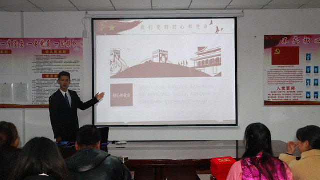 为深入贯彻落实习近平总书记“治国理政”、“治边稳藏”重要战略思想、全国教育大会精神、全国高校思政工作会议精神、“不忘初心,牢记使命”主题教育精神,进一步加强我院党员、入党积极分子的党性修养,认真学习党的十九届四中全会精神,用习近平新时代中国特色社会主义思想武装头脑,夺取新时代中国特色社会主义伟大胜利,实现中华民族伟大复兴。水土学院党员工作站于2019年11月18日晚18:00在水利土木工程学院会议室开展了“不忘初心,牢记使命”主题学习宣讲分享交流会,出席此次活动评委的有水利土木工程学院党委书记达瓦、水利土木工程学院党委副书记潘多、学生第三党支部书记孙晓晨、学生第四党支部书记孙文青、学生第四党支部副书记聂浩。参赛成员有各学生党支部党员、入党积极分子。