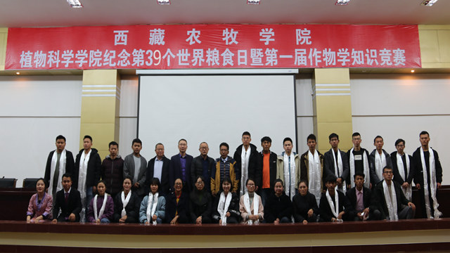 为深入贯彻落实习近平总书记给全国涉农高校书记校长和专家代表的重要回信精神,纪念第39个世界粮食日,促进广大农科学子秉承“博学为农、精业兴藏”的校训,重视农业生产,关注粮食和农业发展的成就,博闻强识,夯实专业基础, 10月19日下午,植物科学学院依托农学教研室及学生农学党支部,充分发挥党建带专业建设作用,在行政一楼会议室开展了“纪念第39个世界粮食日暨第一届作物学知识竞赛”主题党日活动。植物科学学院副院长次仁央金、动物科学学院党委副书记旦巴,农学教研室全体老师及农学专业群体学生近300人参加。