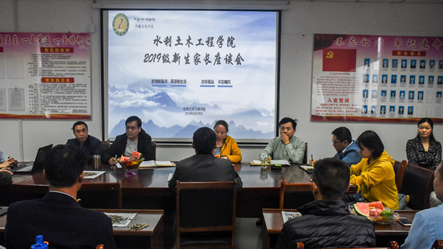 在这秋高气爽、喜悦丰收的秋季,美丽的农院迎来了2019级新生的入学报到。2019年8月29日,美丽的校园内张灯结彩、彩旗飘扬,人头攒动、热闹非凡,一个个带着喜悦、怀揣梦想的新生,有的由家长陪送,有的结伴同来,有的只身而来,他们一踏入大学殿堂步入农院大门走进校园后受到了学校接待工作人员、志愿者的热情接待,学校和各二级学院设立的接待点处有序合理的安排、便捷有效的注册、周到细心的服务使他们很快报到注册、入住宿舍、安心休息。为切实做好新生接待、入学教育等各项工作,经过水土学院党组织的高度重视、大力支持,学生管理科的周密安排、精心组织,水土学院于8月29日晚上7:30,在学院会议室召开了学院19级新生家长座谈会,学院党委书记达瓦、院长黎普明、副书记潘多、副院长王培清、副院长易辉、辅导员、新生班班主任、40余名家长及新生代表参加了会议,会议由达瓦主持。
