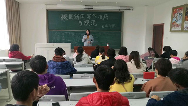 为加强学生宣传队伍建设,提高青年学生的新闻素养,调动大家新闻写作的积极性,近期,食品科学学院举办校园新闻写作专题培训,分别围绕校园新闻写作技巧与规范、校园会议类新闻写作开展了两期讲座。学校党委宣传部校报编辑张翠竹受邀主讲,食品学院党委副书记索朗才旺主持讲座,该院学生党支部、团总支、学生会成员以及各班宣传委员、组织委员参加培训。