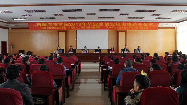 西藏农牧学院招就处处长薛涛、林芝市人社局副局长杨运英及林芝市劳动就业服务中心等相关同志、院招生就业处工作人员及来自我院各二级学院的共计150名2019届毕业生参加了结业典礼。结业典礼上,学院招生就业处处长薛涛及林芝市人力资源社会保障局副局长杨运英分别作了讲话,培训教师代表及学员代表作了发言。薛涛处长希望广大学员积极响应党和国家号召,充分利用所学知识,积极投身自主创业行列,将国家需要和个人成长充分融合,实现成长成才。