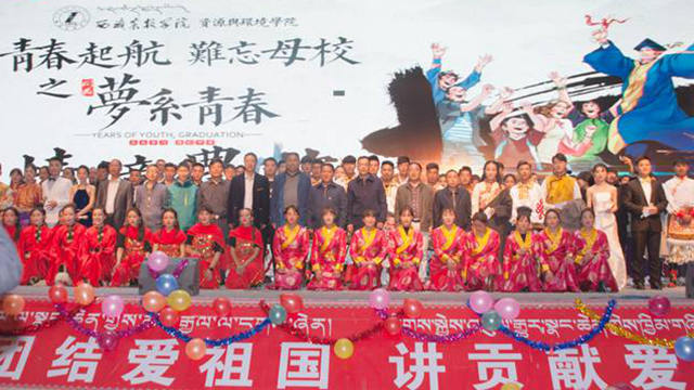 五月的林芝桃花依然绚烂,而转眼间又到了毕业季,为这春意盎然的校园增添了一丝秋的伤感。5月20日晚,由资源与环境学院团总支主办的2018年毕业生晚会在校文体馆隆重举行。我院党委委员、副院长魏建荣,团委书记黎普明,学工处处长米玛顿珠,宣传部部长巴桑次仁及各二级学院主要领导和嘉宾来到晚会现场,与2000余名师生共同度过了一个温情而难忘的夜晚。