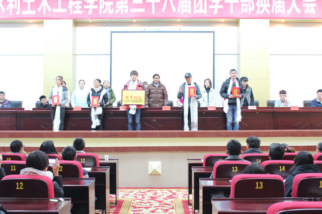 凛冬初至,数萼含雪,水利土木工程学院团总支、学生会全体成员在本学年中顺利换届,并于2017年11月25日举行了第三十八届团学干部换届大会。与会人员有水利土木工程学院党委书记达瓦同志、副书记潘多同志、团总支书记商盾老师、辅导员孙晓晨老师、宋沛老师、党员工作站站长万明金、第37届团总支副书记楚耀川、学生会主席张林以及第38届团总支副书记杨世炬、学生会主席张智军和所有学生干事。