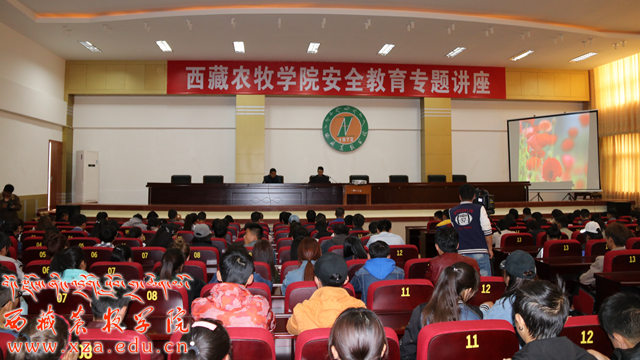 为进一步加强我院社会治安教育和管理工作,提高广大师生的安全责任意识和遵章守纪意识,增强安全防范能力和应急处置能力,切实维护全体学生的生命财产安全,有效的防范和减少各类安全事故,确保校园安全和谐稳定。2017年6月3日下午,由学生工作处、安全保卫处联合举办的社会治安专题讲座在行政楼一楼会议室顺利召开。林芝市巴宜区公安局刑侦支队教导员钱伟出席并主讲。学生工作处人员、各二级学院(部、所)辅导员、班主任、学生干部代表等近500名师生参加讲座。讲座由学生工作处处长米玛顿珠主持。