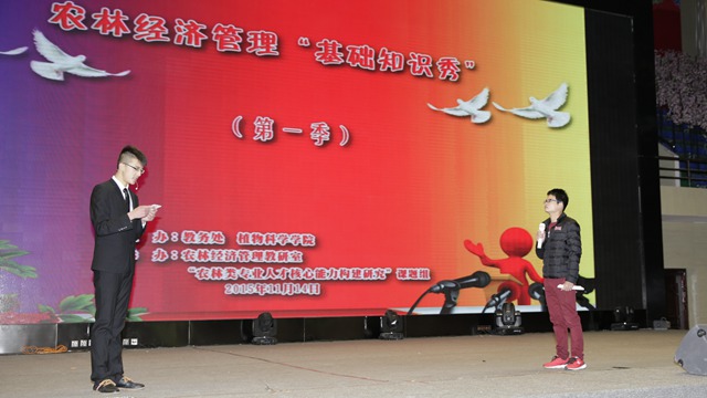 为丰富校园文化,激发学生对专业知识的学习热情,不断提升学生综合素质,营造健康活泼、积极向上的精神文明氛围,推动“五教创新”活动深入开展,植物科学学院于2015年11月14日在文体馆举办首届农林经济管理“基础知识秀”,教务处相关人员、植物科学学院农林经济管理教研室全体教师及农业经济管理学科相关专业学生100余人参加。