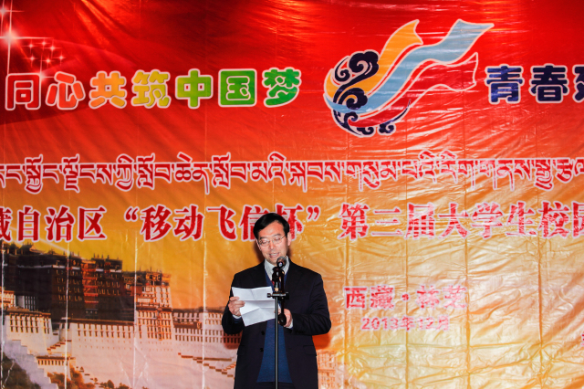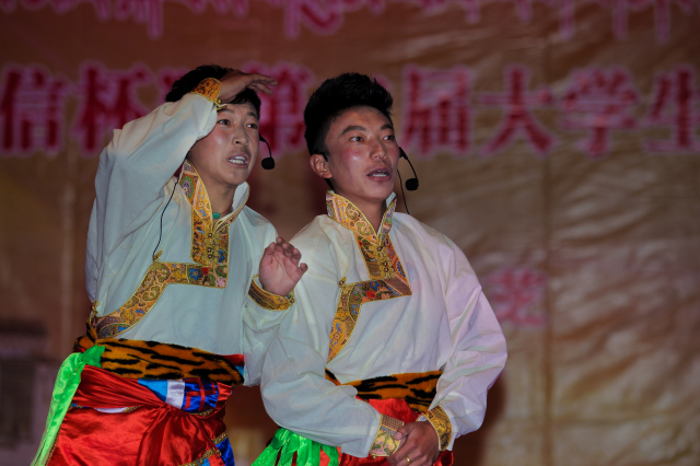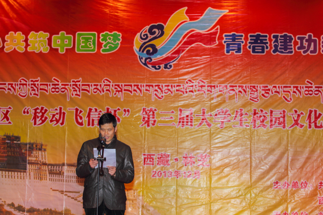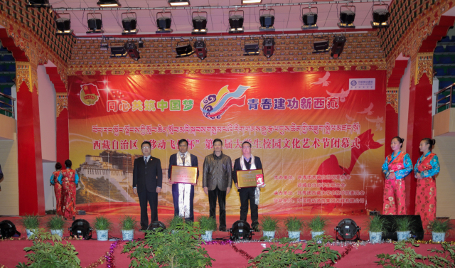 2013年12月6日晚,由我院承办的西藏自治区“移动飞信杯”第三届大学生校园文化艺术节闭幕式暨颁奖晚会在文体馆隆重举行。自治区教育厅副厅长楼旭庆,团区委党组成员、副书记李亚祥,我院党委书记、副院长纪建洲,党委副书记、院长次旦平措以及来自全区其他高校的相关领导出席闭幕式。到场的还有自治区教育厅高教处、学生处、团工委,团区委,林芝地区团委、中国移动通讯集团西藏有限公司的相关领导。各高校团干、指导老师、参赛歌手及我院师生3300余人参加了闭幕式。