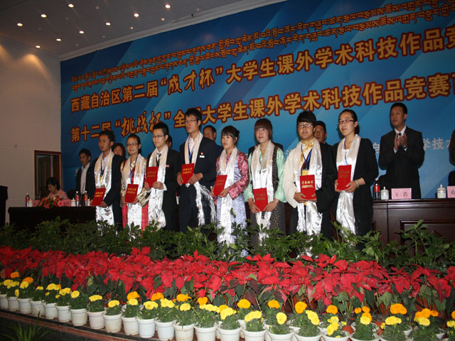 2011年6月10日,在团区委、自治区教育厅、自治区科技厅、自治区科协、自治区学联共同主办的全区第二届“成才杯”大学生课外学术科技作品竞赛终审决赛暨第十二届全国“挑战杯”大学生课外学术科技作品竞赛选拔赛中,我院报送的4件参赛作品分别获得两个二等奖和两个三等奖,其中,动物科学学院2007级动物科学专业拉珍同学的论文《异齿裂腹鱼的人工规模化育苗技术初步研究》和植物科学学院2007级植物保护专业普布次仁同学的论文《不同药剂对林芝地区小白菜根肿病的防效研究》入选全国“挑战杯”决赛,我院在此次竞赛中获得高校优秀组织奖。