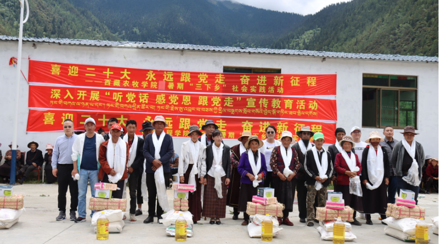 为深入学习宣传习近平新时代中国特色社会主义思想,贯彻落实习近平总书记关于青年工作的重要指示,引导和帮助广大青年学生在社会实践中“受教育、长才干、做贡献”,在观察实践中“听党话、感恩党、跟党走”,喜迎二十大的胜利召开,7月18日西藏农牧学院在林芝市巴宜区百巴镇开朗村展开了“喜迎二十大 永远跟党走 奋进新征程”暑期“三下乡”社会实践活动。