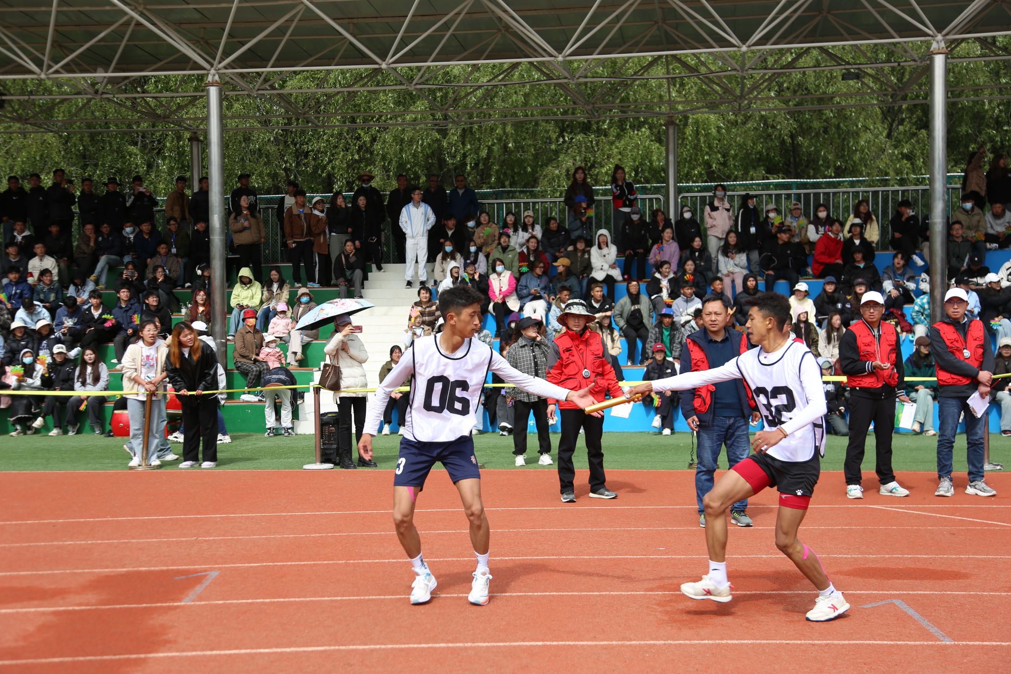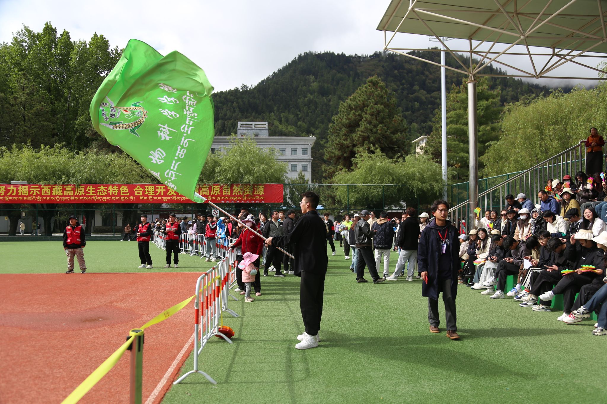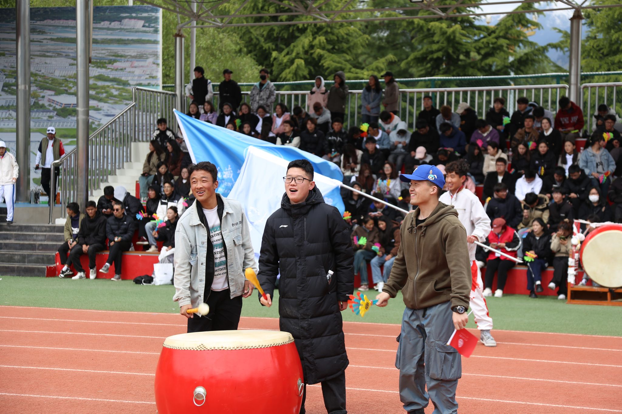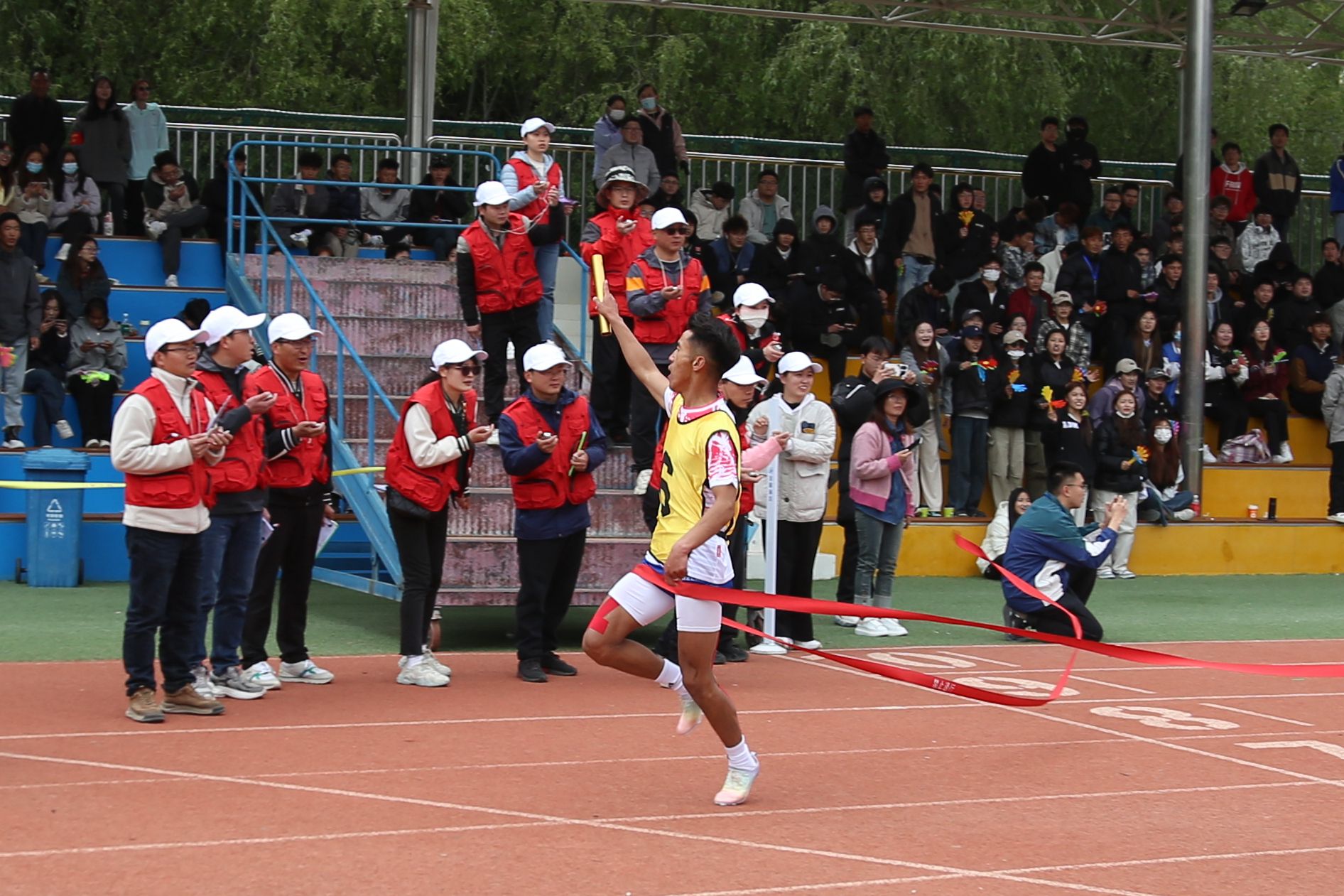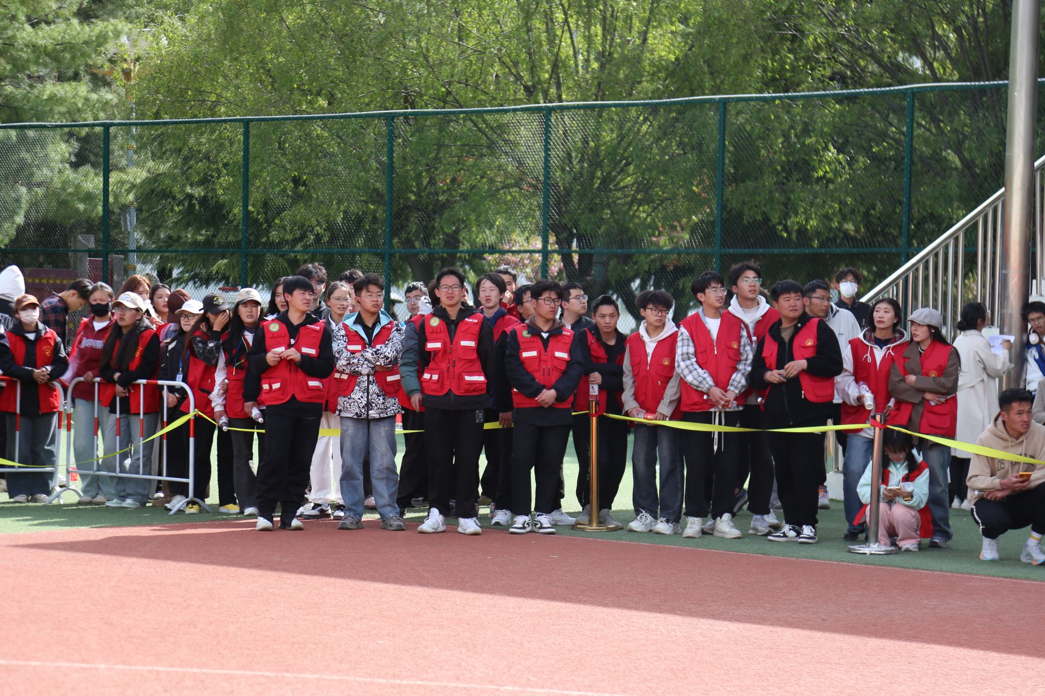 看台上坐满了师生观众,热情地为运动员们呐喊助威