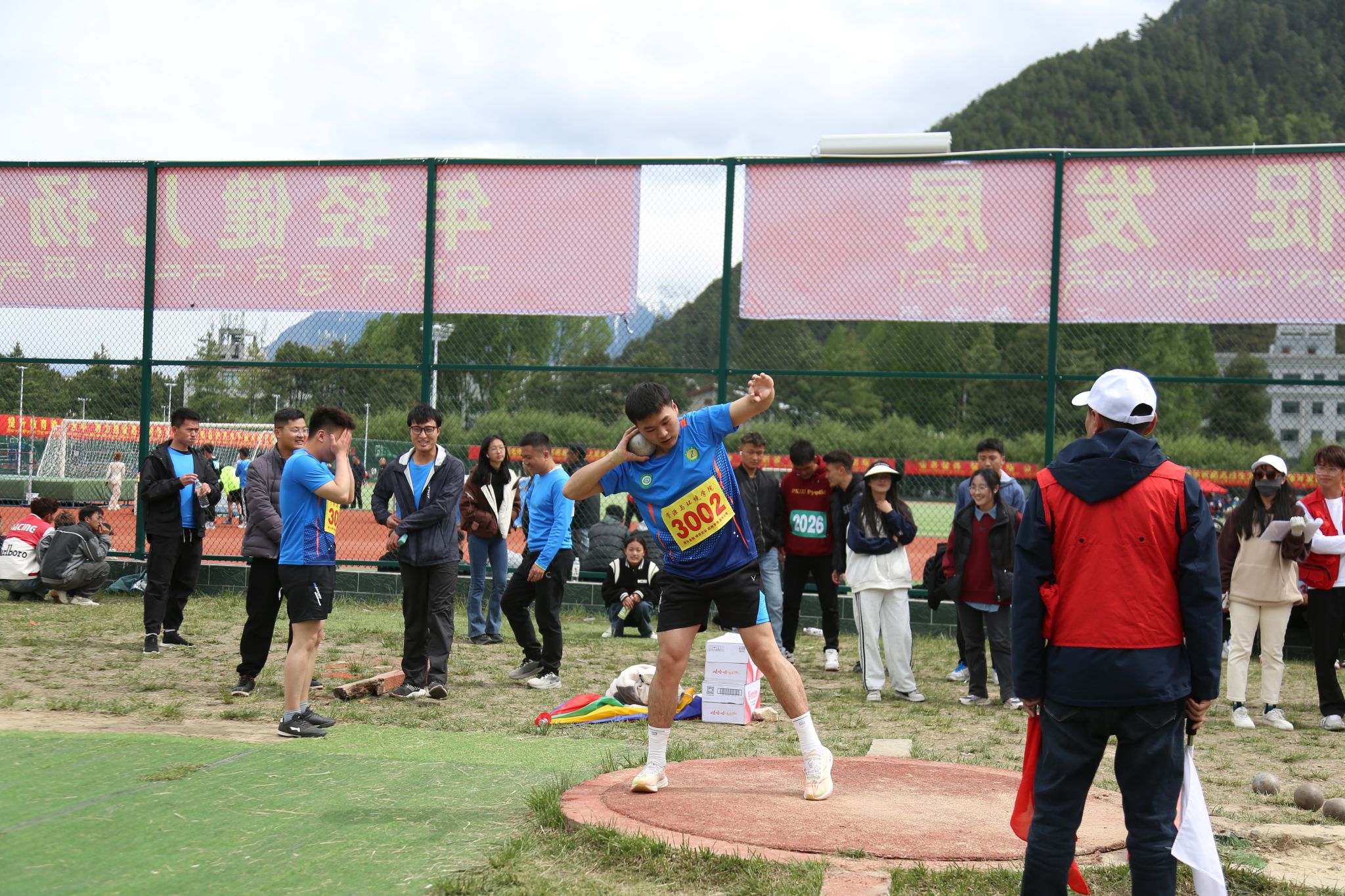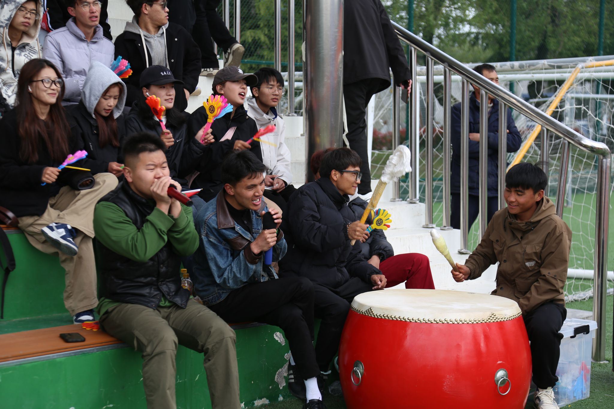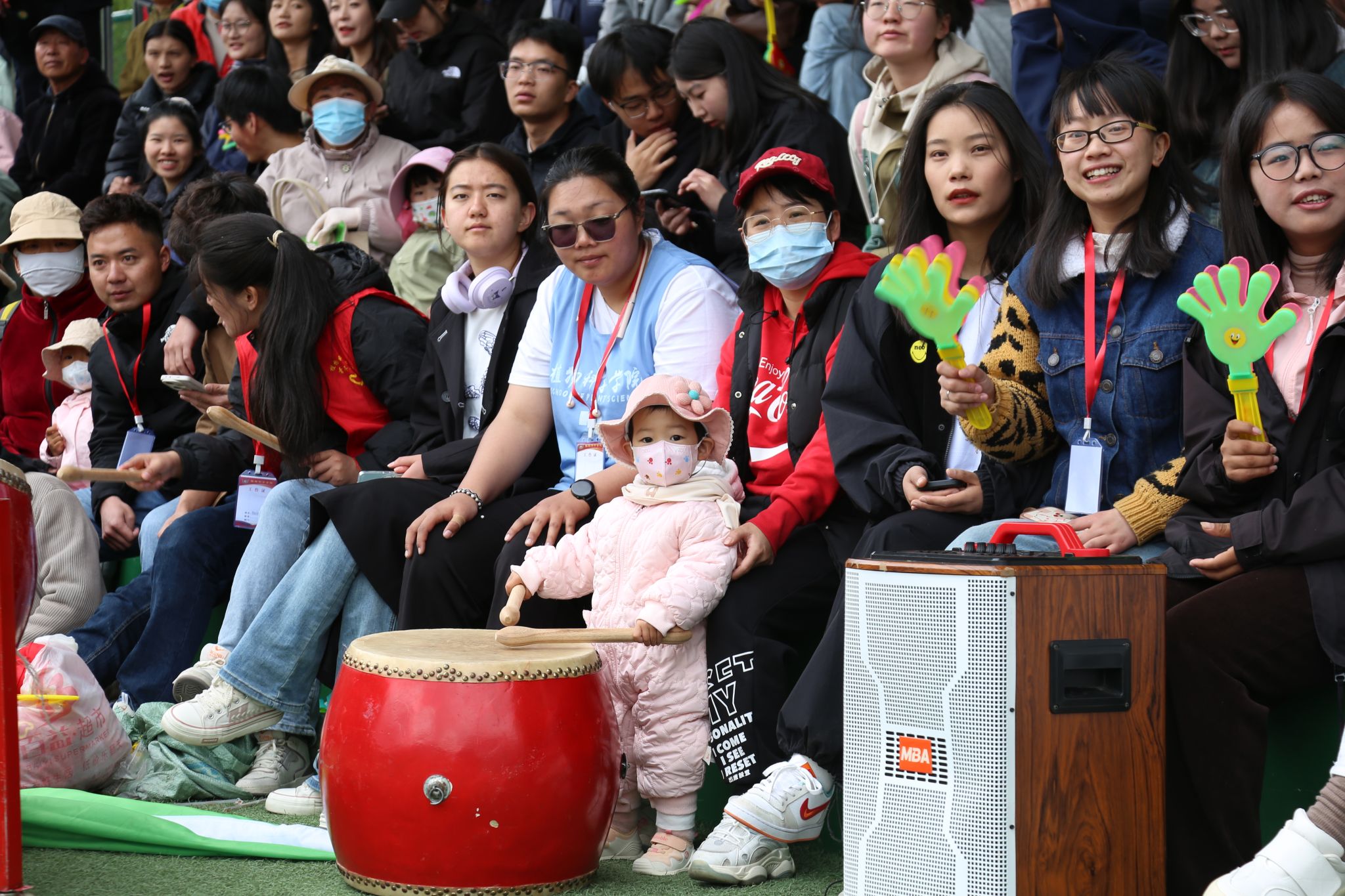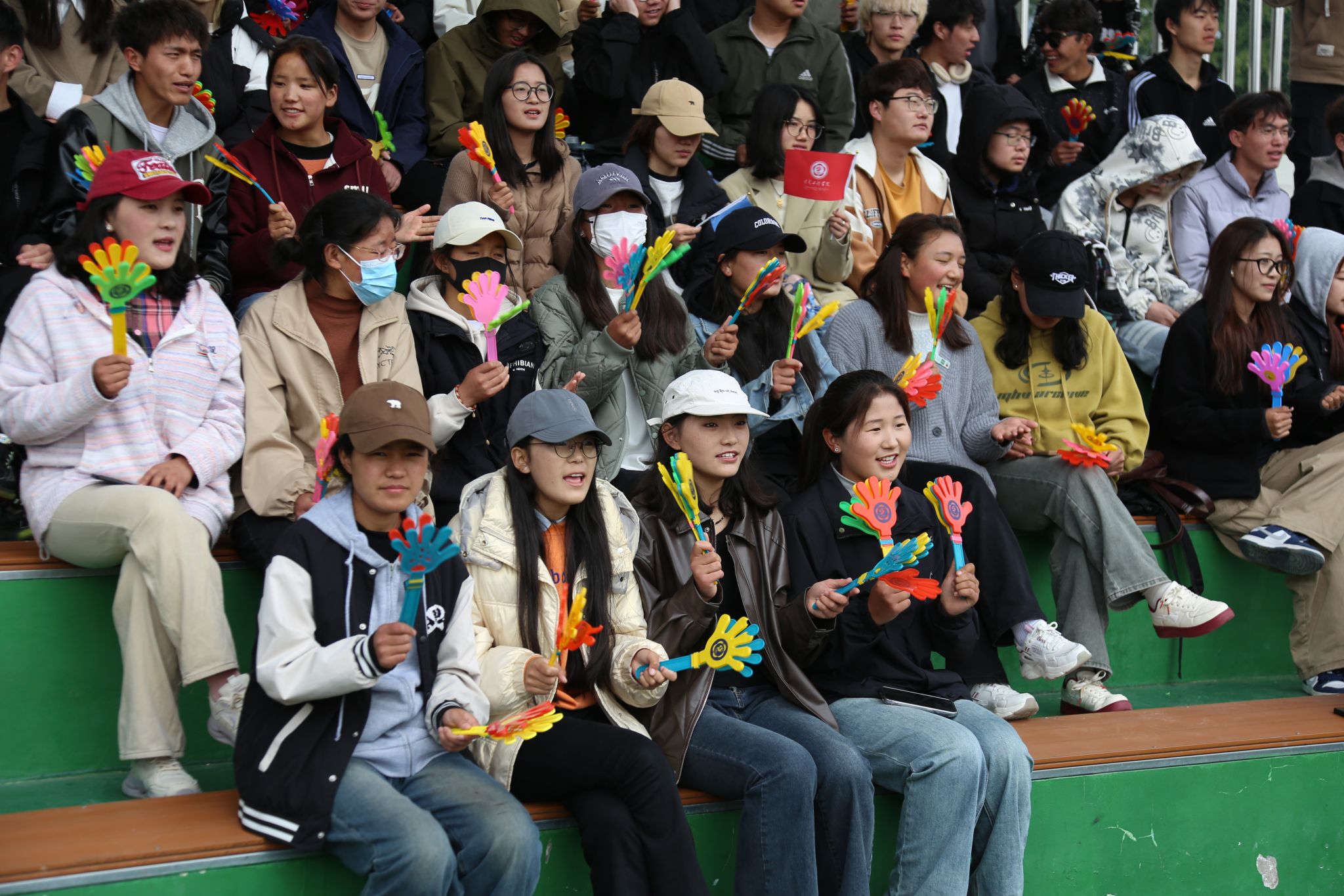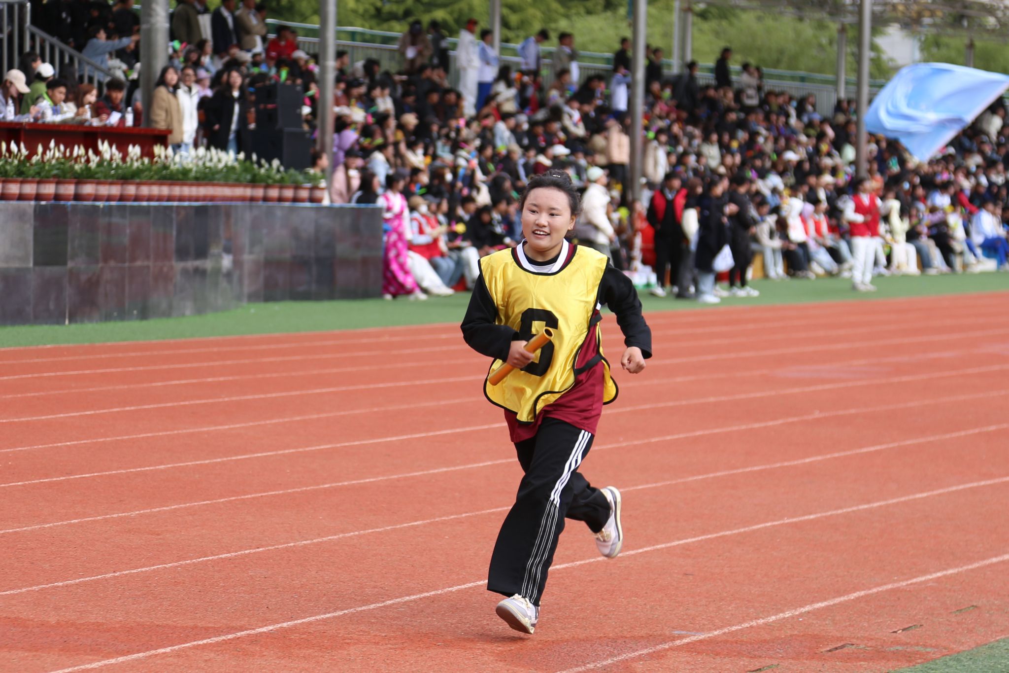 看台上坐满了师生观众,热情地为运动员们呐喊助威