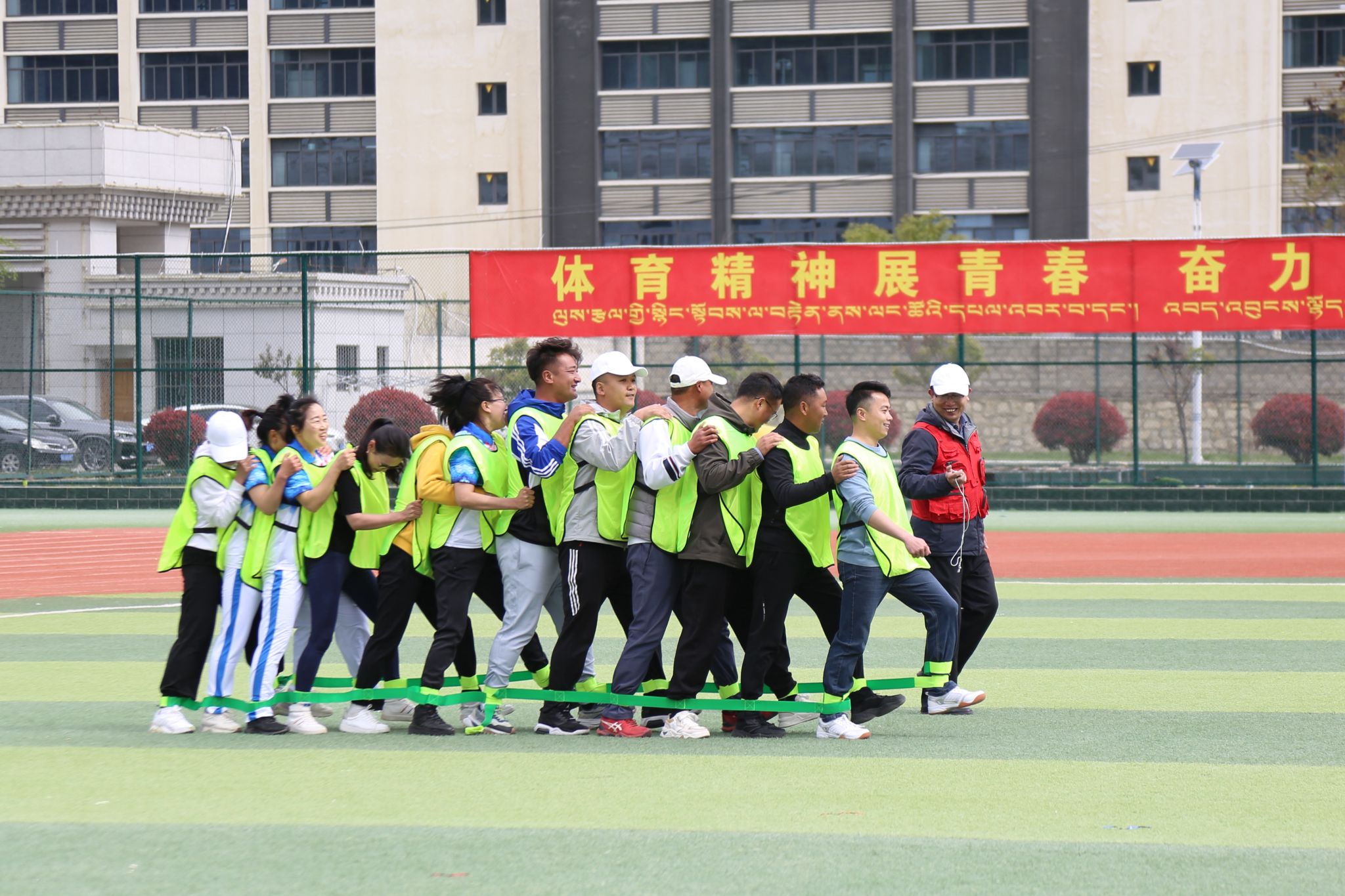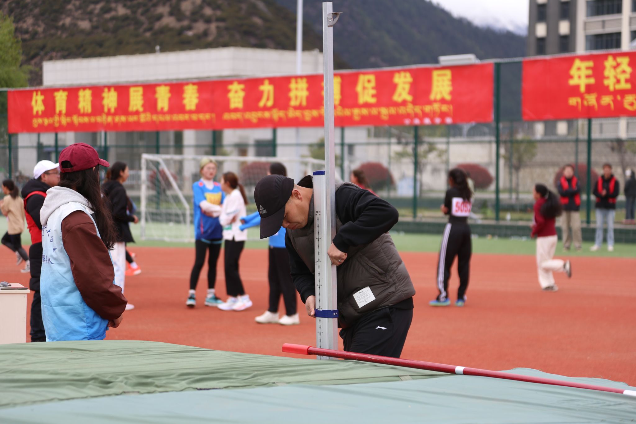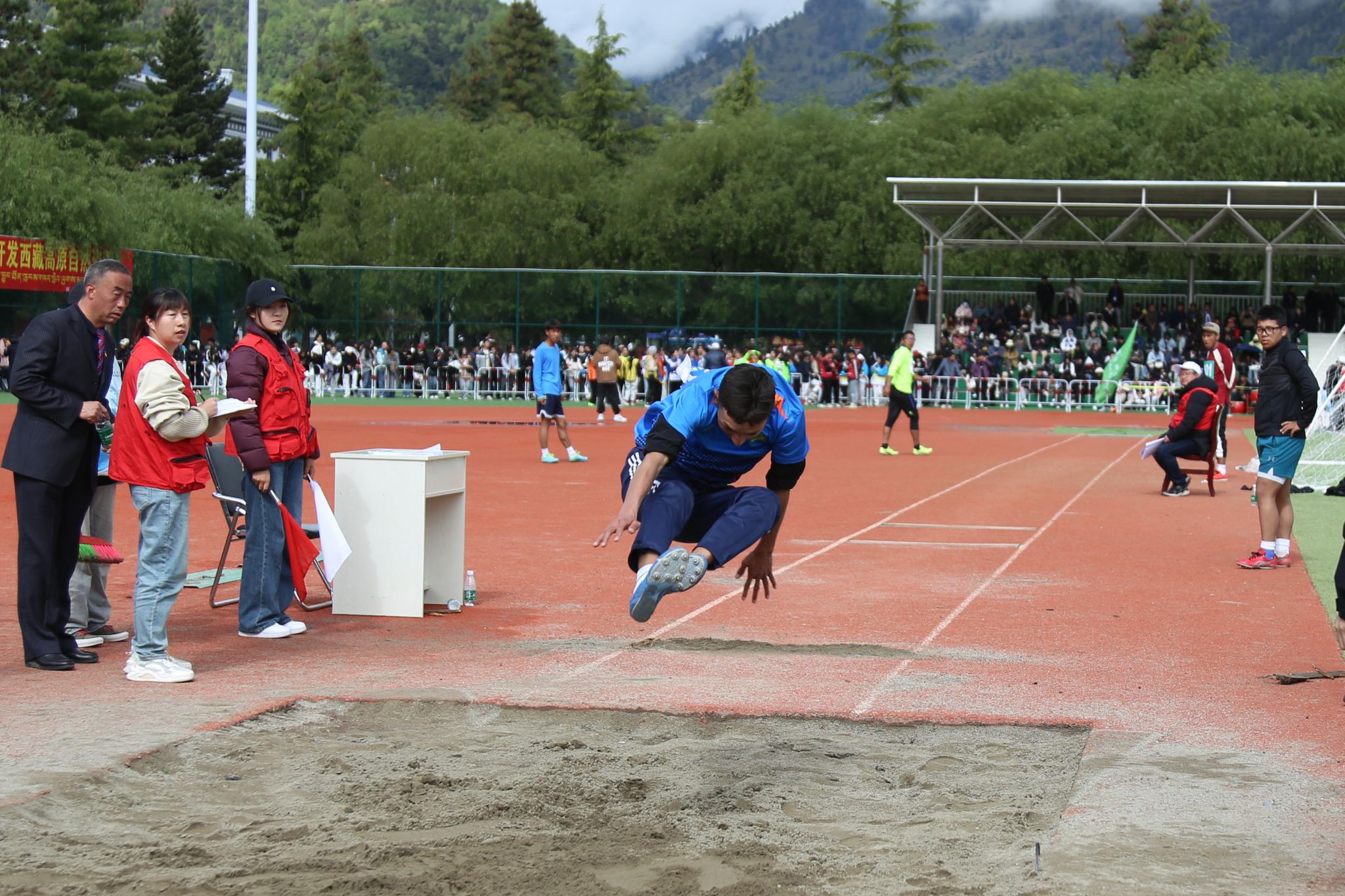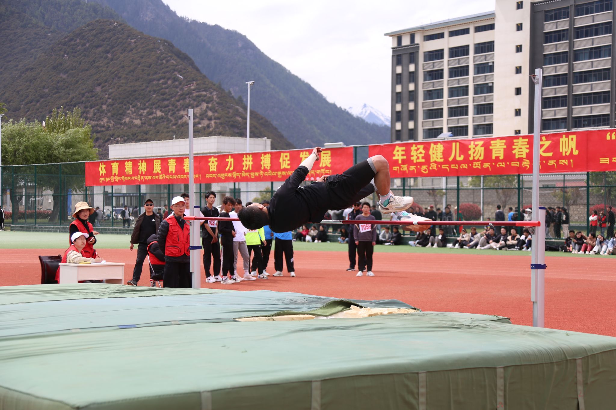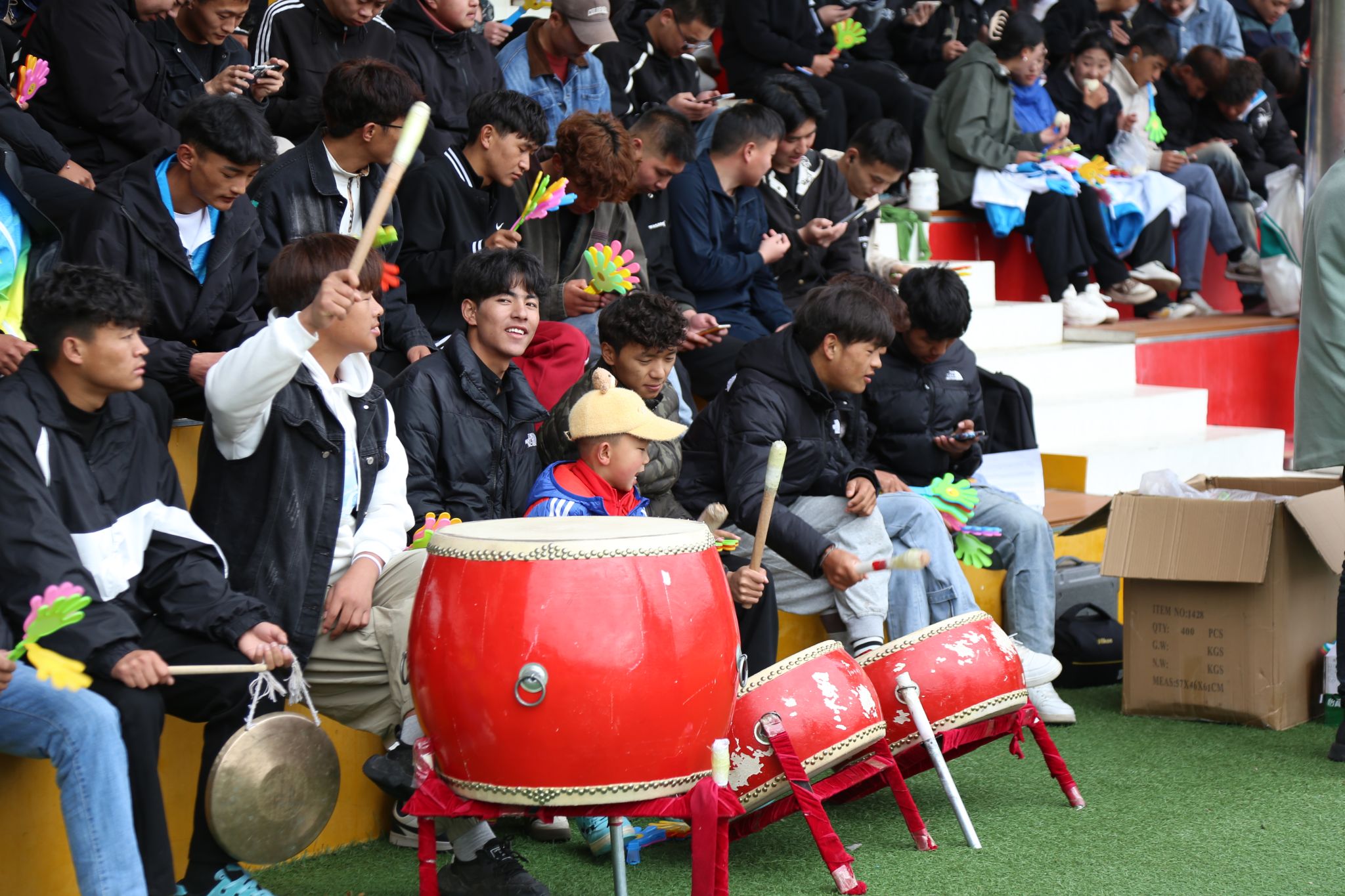 看台上坐满了师生观众,热情地为运动员们呐喊助威