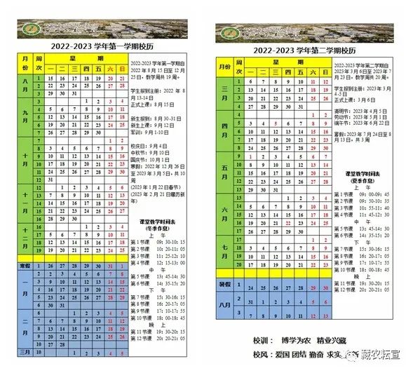 2022-2023学年校历