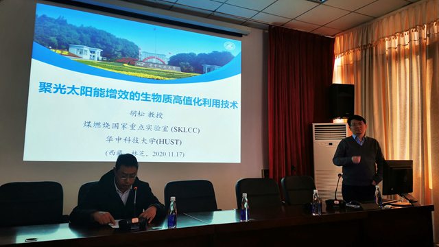 胡松教授针对“聚光太阳能增效的新型生物质热解技术”专题做了学术报告。他是华中科技大学三级教授,博士生导师,华中学者,教育部新世纪优秀人才,德国洪堡学者,现任武汉市洪山区科协副主席(兼)。主要从事生物质热反应机理及新型应用技术、传统化石能源高效洁净反应机理及应用技术、多种可再生能源资源化利用、生物质基碳材料高值化转化等方面的研发工作。近年来主持国家重点研发计划国际合作项目一项,承担和参与重大基础与国合项目20余项,其中承担国家级重大科研及基金项目7项,企业合作项目12项,澳大利亚政府低碳减排研发项目1项,参与欧盟Horizon2020项目1项。获国家科技进步二等奖,湖北省科技进步一等奖。他在报告中详细介绍了构建了聚光增效耦合热解系统,初步研究聚光加热条件下生物质热转化过程;介绍了基于热解油组分间交互作用解析,提出热解油受热制备高附加值碳材料的新途径以及提出镍基催化热解油重整制富氢气体及碳纳米管,为高质化利用提供新思路等内容。同时指出在西藏采取太阳能与生物质能协同利用技术可以有效改善农牧人民生产生活,同时也有利于农业生产及生活过程中废弃物利用。