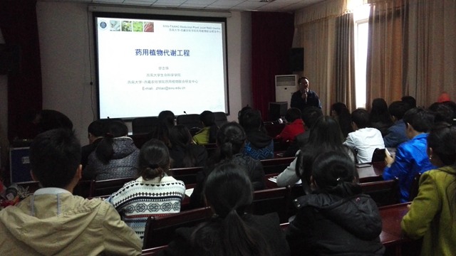 5月25日晚,受食品科学学院邀请,我院第一批柔性人才引进专家、西南大学生命科学学院廖志华教授在我院作了题为“药用植物代谢工程”的学术报告。90余名师生到场聆听了报告。