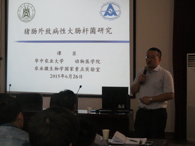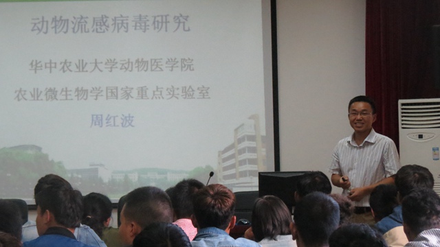 6月26日下午,受我院动物科学学院邀请,华中农业大学周红波教授、谭臣副教授在图书馆学术报告厅分别作了题为“动物流感病毒研究”和“猪肠外致病性大肠杆菌研究”的学术报告。80余名师生到场聆听了报告。