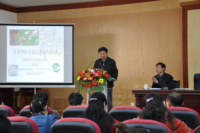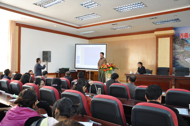 此次学术研讨会共分为学术报告会、论文与科研合作交流会两个部分。西藏自治区水利厅副厅长郭永刚教授,河海大学任青文教授,河海大学水电学院副院长俞双恩教授,华北水利水电学院水利学院副院长康迎宾教授与河海大学王文教授分别做了题为《西藏水利科技现状及应对重大突发自然灾害专题研究》、《灾变条件下梯级库群系统的破坏机理与风险控制》、《节水型社会建设理论与实践》、《水利水电工程研究展望》和《基于地表温度与植被指数遥感数据的地表土壤含水量与陆面蒸散发量估算》的学术报告,并与我院与会教师和学生进行了积极的互动和交流。下午,自治区水利学会与我院水利学会会员共35人,从西藏冰川灾害、节水灌溉、水质环境变化监测和水利建设工程等方面进行了广泛的论文交流,并就水利主管部门与高校间合作形式进行了深入探讨,提出了以水利学会为平台,充分发挥高校和科研院所的科研与人才优势,积极参与西藏水利建设工程规划与实施,推进西藏水利事业实现跨越式发展。