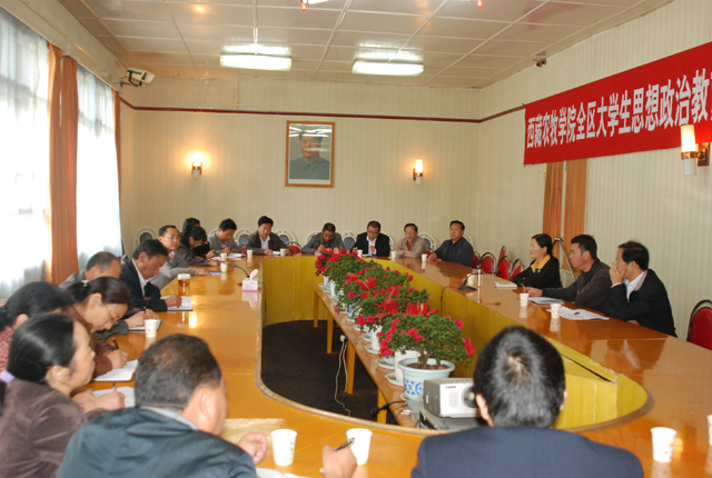 2010年8月23日,由自治区党委宣传部、教工委、团区委联合组成的全区大学生思想政治教育工作第一调研组在自治区教工委副书记徐敏同志带领下莅临我院,就大学生思想政治教育工作开展情况进行调研。