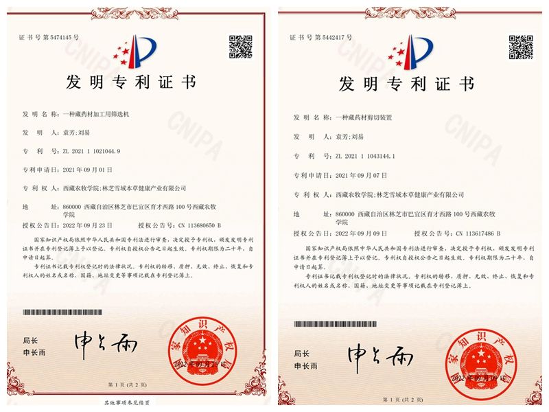 食品科学院袁芳副教授主持的校地合作项目——“薄叶鸡蛋参栽培技术集成与示范研究”(项目经费50万元),同样取得了令人瞩目的成果:在米林市(原米林县)米林镇雪卡村,示范栽培薄叶鸡蛋参及套种藏药材15.1亩,制定了《薄叶鸡蛋参栽培技术规程》和《薄叶鸡蛋参分级规范》,并成功发表了多篇学术论文,获得了国家发明专利及实用新型专利多项,同时培养了本科生6人。