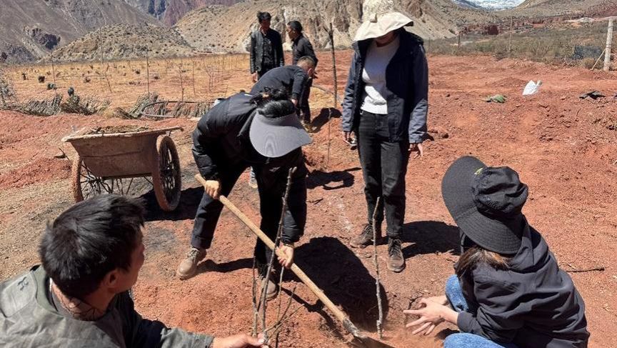 团队在八宿县林卡乡孜荣家庭农场开展了梨树引种和种植工作,成功完成 2000 多株梨树的栽种任务。