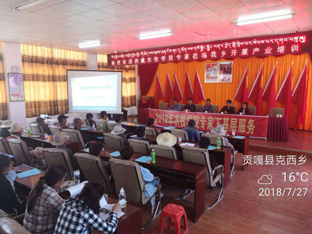为打赢我区脱贫攻坚战,全面发挥我院专家带头作用,带动技术、智力、管理、信心等要素流向基层,全面贯彻落实脱贫中落实精准的要求,不让一户一人掉队。7月27日,由自治区人社厅主办、西藏农牧学院承办的“2018年度万名专家下基层服务”在山南贡嘎县克西乡正式启动,此次专家服务培训活动,共计六天,由我院成教部负责人带领植物科学学院及“李家奎团队”专家分赴山南贡嘎县克西乡、错那县勒村和日喀则康马县康马镇开展培训,服务人次共计100余人。