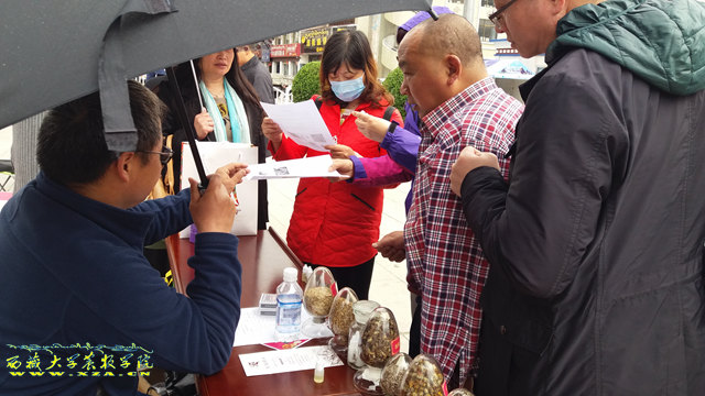 此次活动重点围绕生态环保、应急避险、低碳节能、健康生活等百姓生活密切相关的热点问题,开展主题宣传,普及科学知识和技术方法,提高公众科学素质。我院科协展出了砂生槐、雪松、波棱瓜子、天仙子、康玛赖草、喜马拉雅紫茉莉、打箭菊、羊茅、核桃及进口小米等十余种种子。活动中,我院充分展示了部分科研成果和科技开发新产品,其中,动物科学学院李家奎教授研发的用于动物表皮杀虫的产品“依普菌素透皮剂”得到了广泛关注,因其涂抹方便、用途广泛、效果良好深受百姓欢迎,在现场发放50余份。