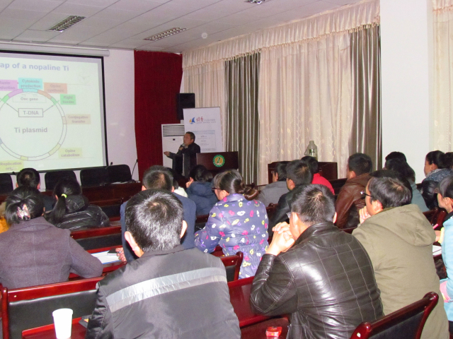 2013年11月18日晚,我院第七批援藏干部、植物科学学院副院长余小林副教授在图书馆学术报告厅作了题为“分子育种技术在园艺植物中的应用”的学术报告。报告会由科研处副处长吴志刚主持,70余名师生聆听了报告。