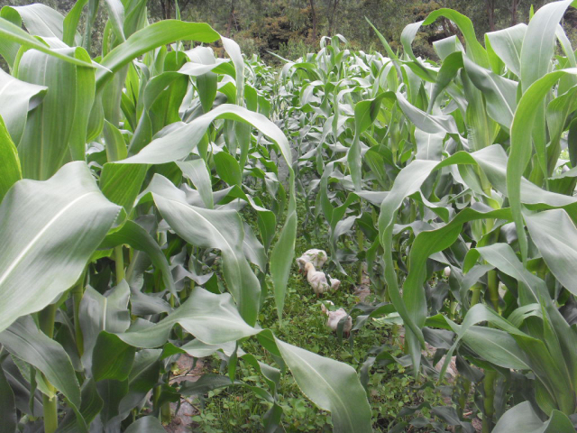 “玉米田养鹅”模式--鹅在田间采食