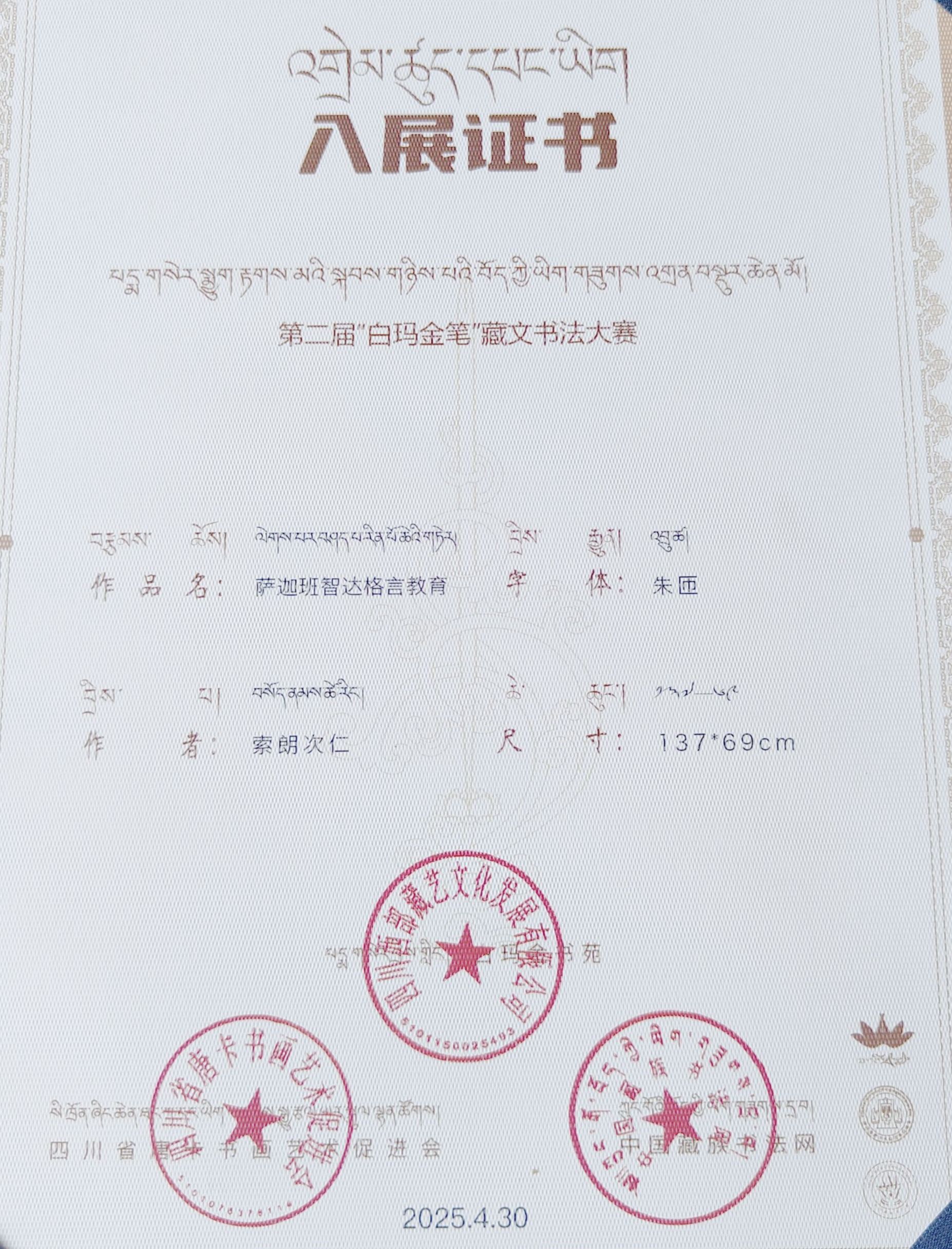 守护非遗再创辉煌。 藏文书法作为西藏传统文化,是中华民族的文化瑰宝,源远流长,承载着民族的记忆与智慧。荣获全国大奖后,协会成员深感传承非遗文化的责任重大。接下来,他们也将在学校的支持下,开展更多形式多样的书法培训、文化交流活动,培养更多书法人才,以笔墨弘扬中华优秀传统文化,向自治区成立60周年献礼。成员们也坚信,只要怀揣热爱,坚守文化传承创新实践,西藏农牧学院书法与绘画协会将书写出更加璀璨的文化强区新篇章。
